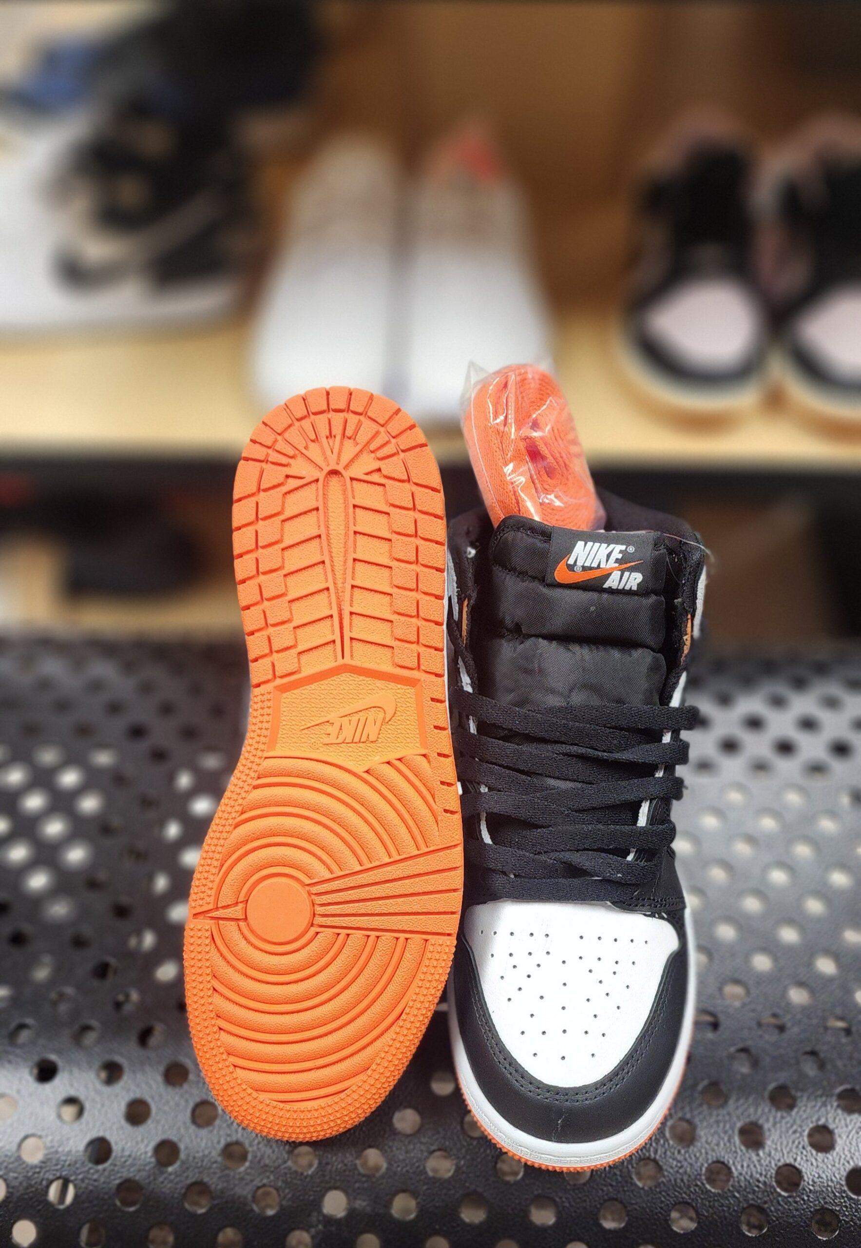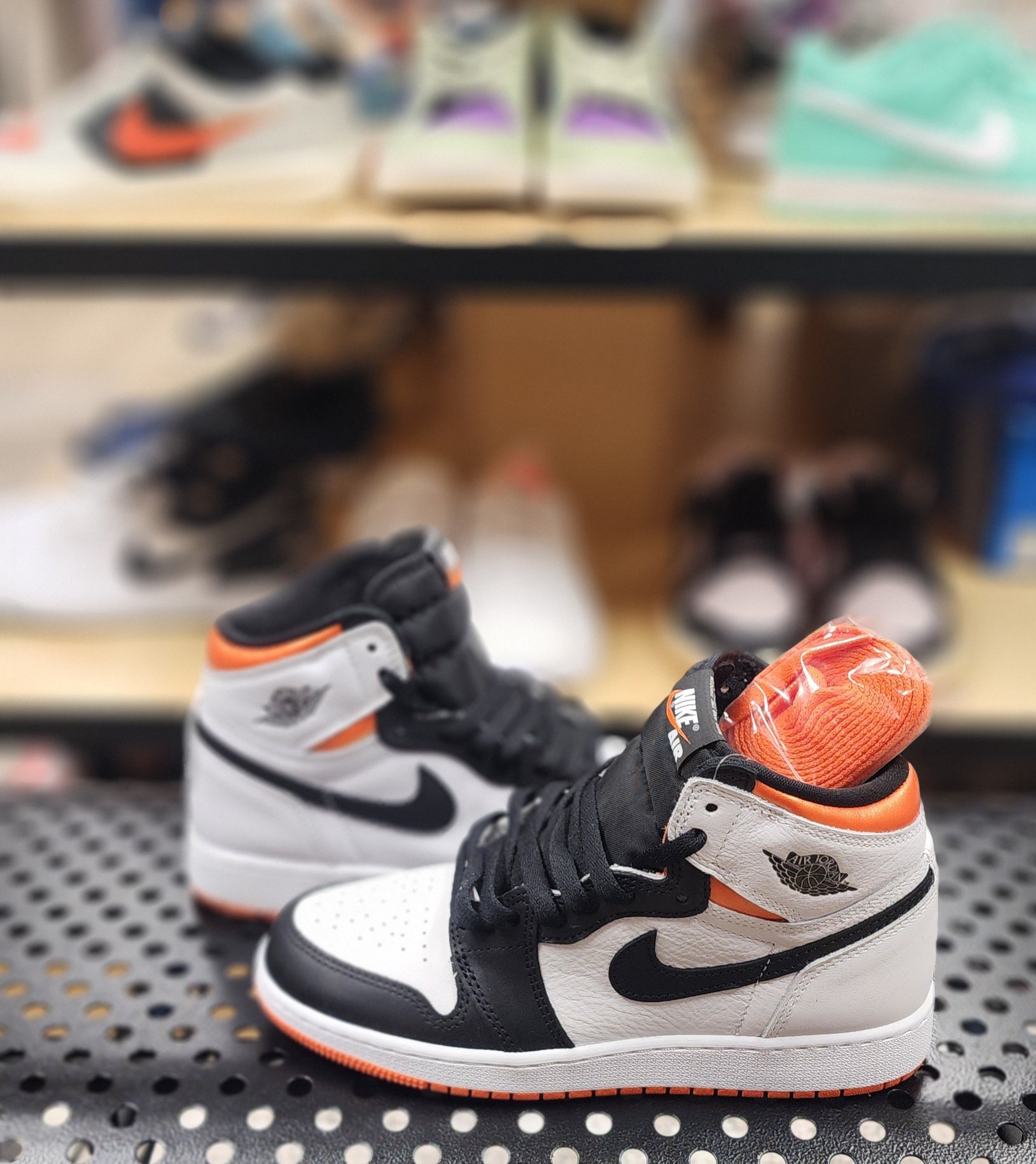 Grade School Air Jordan 1 Retro High OG 'Electro Orange' iconic silhouette. High top design, classic air-sole cushioning and legendary AJ wings logo. Perfect for young trendsetters.