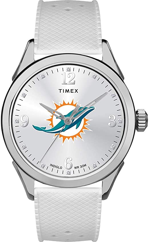 Show your pride with an elegant touch. Shimmering stones mark the hours on the silver-tone sunray dial. A soft, silicone strap completes this refined sporty look.
