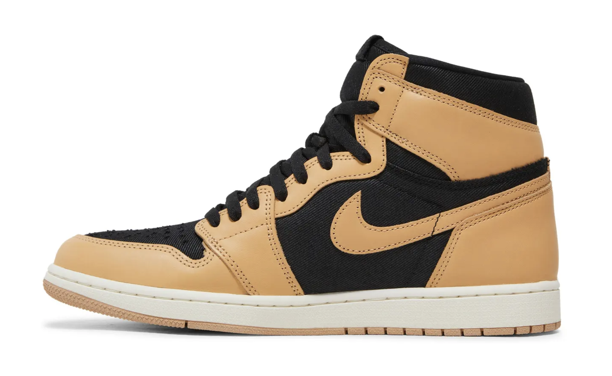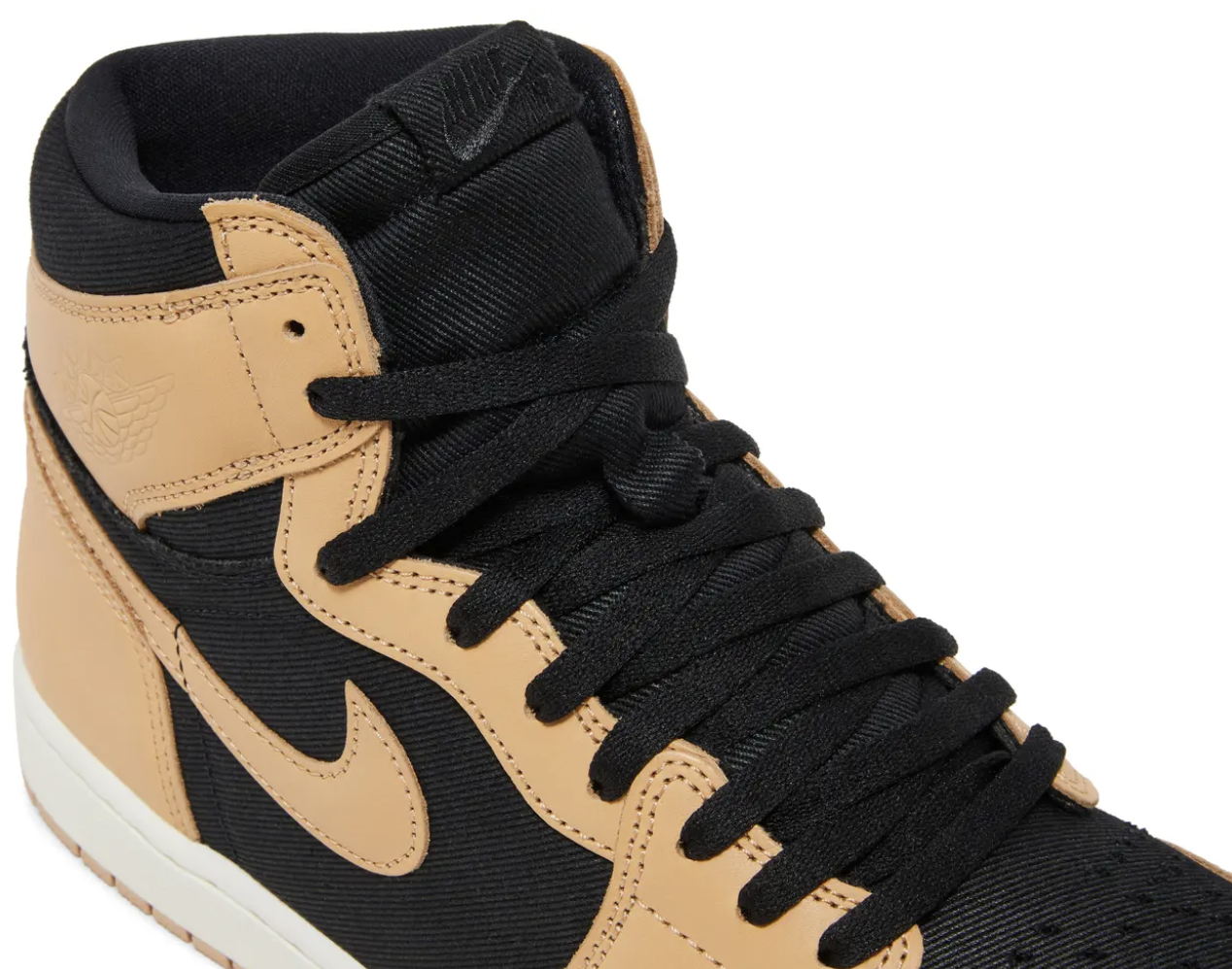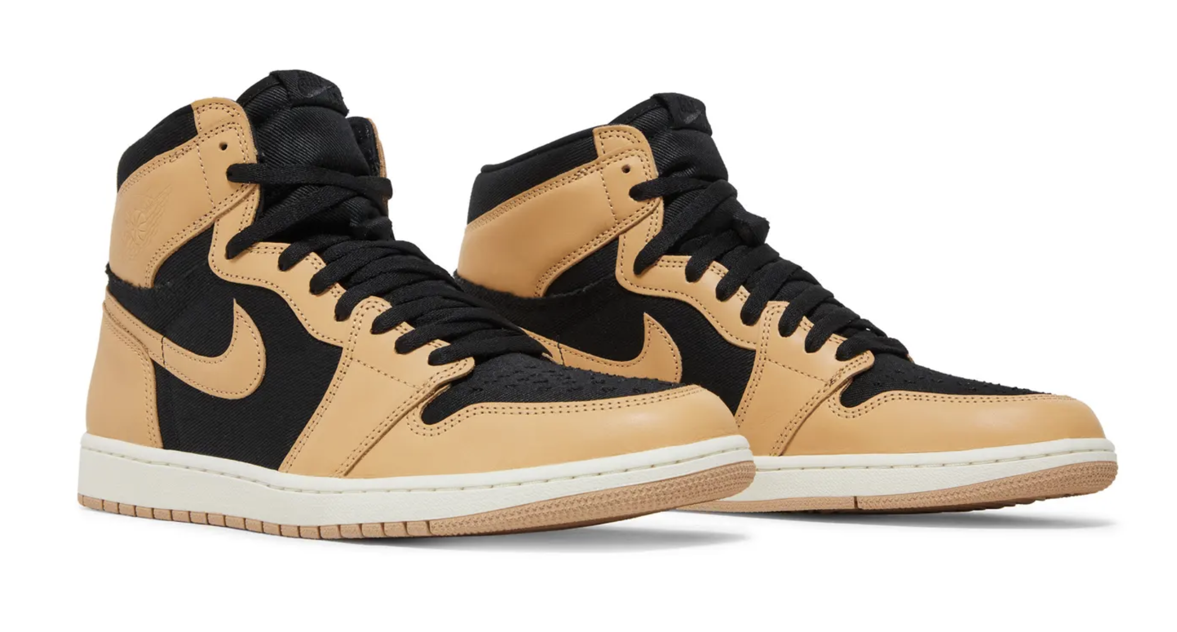 "Unveiling the Air Jordan 1 Retro High OG  'Heirloom' – a timeless icon reimagined. This coveted pair boasts a premium black twill base contrasted with elegant Vachetta Tan leather overlays, including the iconic Swoosh and Wings logo. Experience classic style and undeniable heritage in this fresh take on a legendary silhouette".