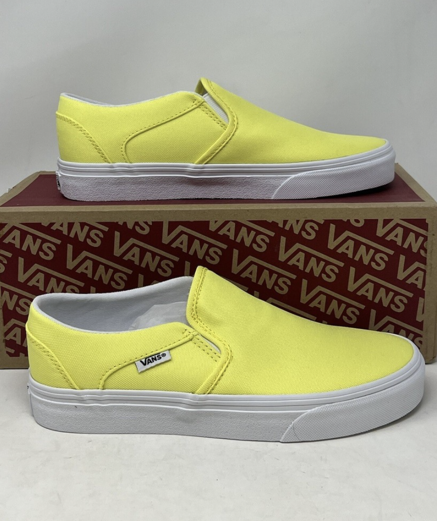 Step into vibrant style with the Vans Asher Slip-On in eye-catching neon yellow!